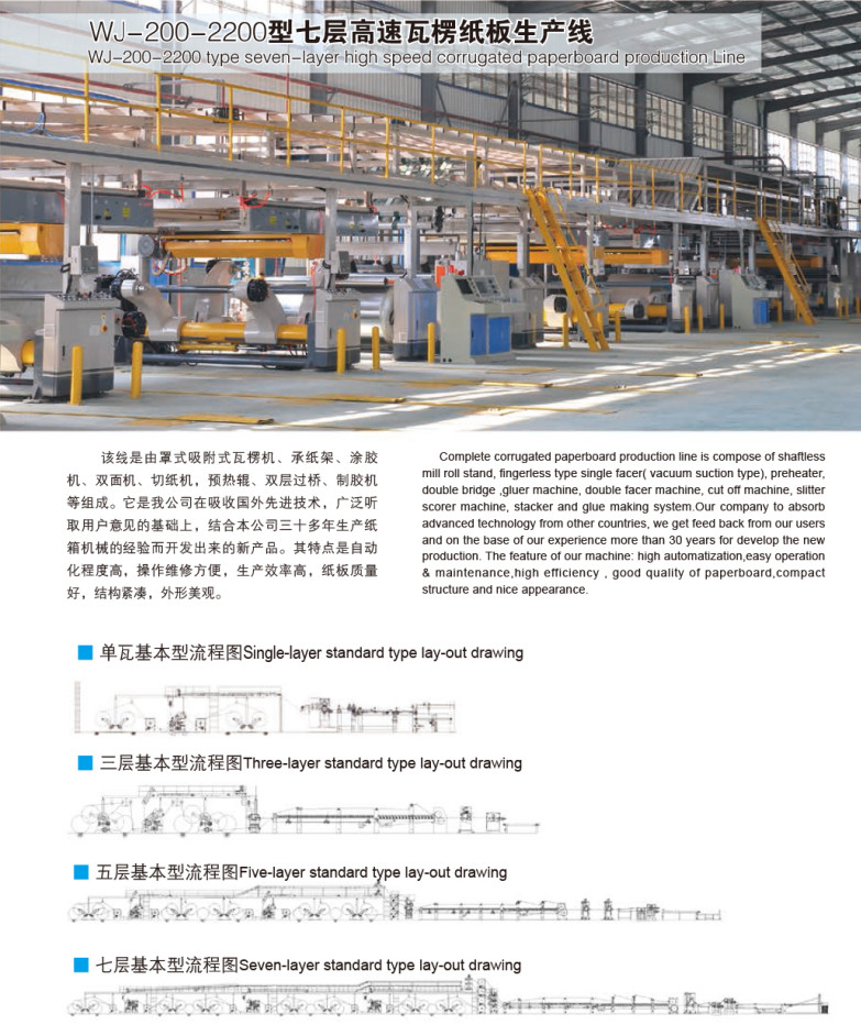 產品名稱: WJ-200-2200型七層高速瓦楞紙板生產線